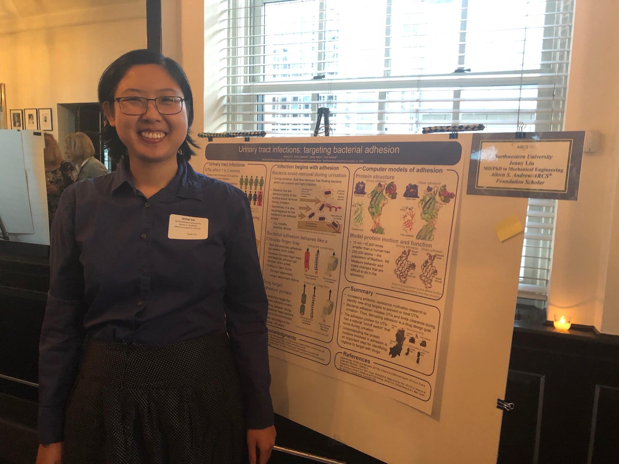 I have been an Arnold Beckman scholar for the past three years while working towards my PhD at Northwestern University. I feel extremely privileged to have received support from ARCS and have always enjoyed meeting the members, whether it is talking about the creative event themes, lessons learned from different industries, or how science and technology have changed over the years. ARCS has provided funds that enabled me to attend conferences and meet peers within my field. It has given me peace of mind to focus on research without distractions and the confidence to pursue important scientific questions that my lab would not typically investigate. Most importantly, however, ARCS has conveyed the importance of bridging lab work with the community-at-large and committed me to become involved in creating opportunities for future scientists as well.